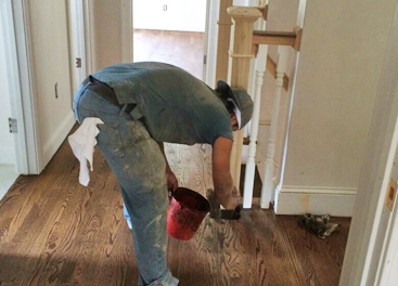 Every five years or so depending on how much action your floors get, they need to be recoated. We will lightly scuff the current finish layer to help with adhesion and then add a new layer of finish to keep your flooring protected and looking great. Doing this every 5 years will help your hardwoods last longer, and save you a lot of money as well. If the protective coating has come off of the floors, or if you want to change the color of your floors, the sanding and refinishing method is your best option.